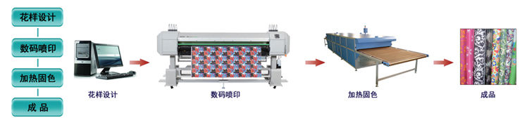 涂料墨水應用于織物噴墨印花不需要復雜的前處理和后處理工藝,直接對織物進行噴墨印花,然后僅需簡單的焙烘即可。