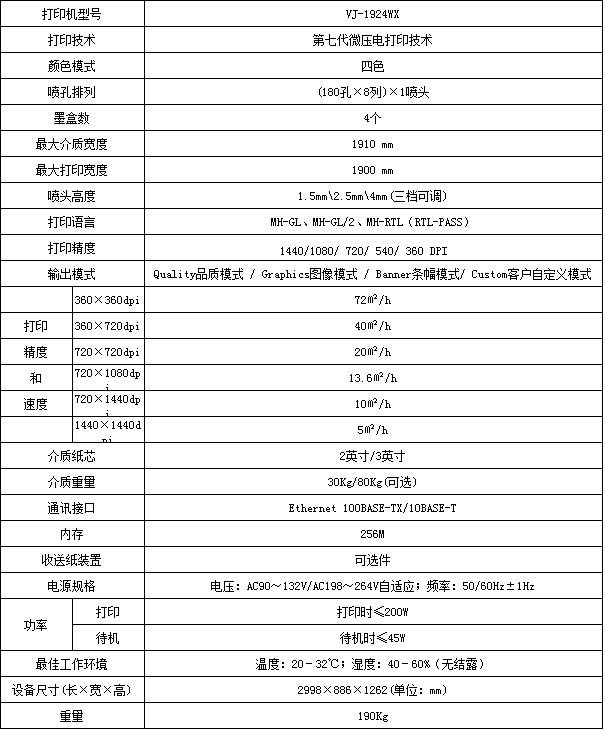 ? 最大打印幅寬1,900mm,最高打印速度72平米/小時;