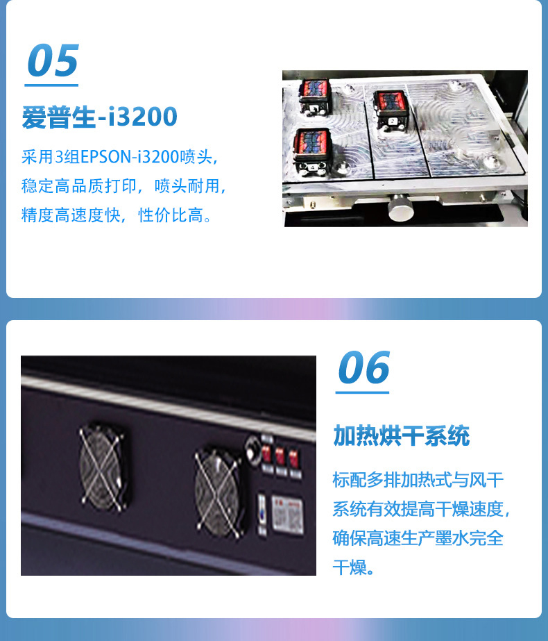 ◆ 三組愛普生I3200噴頭打印,打印寬幅是1800cm;
